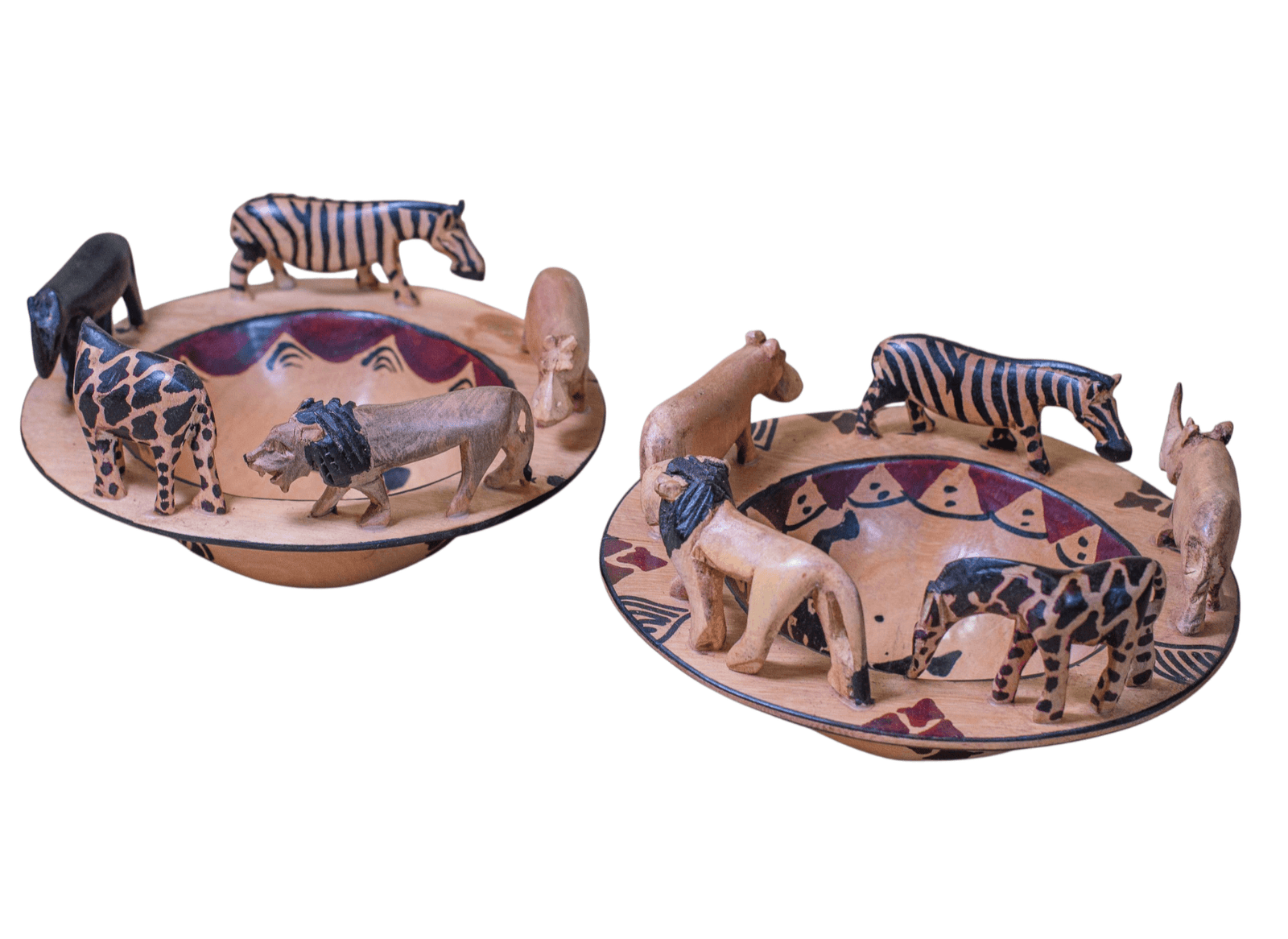 Bring the spirit of the African savanna into your home with this Wooden Bowl with 5 Animal Figurines, meticulously handcrafted in Kenya. Each animal — from elephants and lions to giraffes and zebras — is carefully carved to capture the essence of African wildlife.